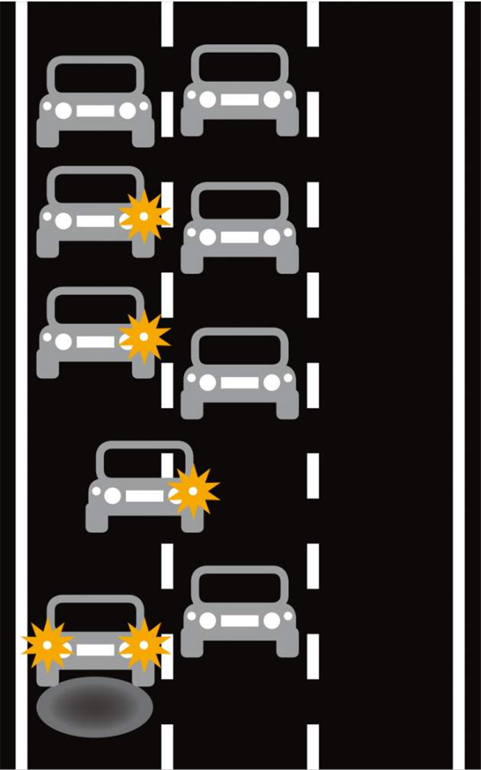 Pokud projíždíte kolem nehody mezi prvními, jste povinni poskytnout první pomoc. Zapněte výstražné směrovky a poskytněte první pomoc zraněným. Ostatní spolujezdci nebo řidiči ať zatím zavolají záchranku a neprodleně umístí výstražný trojúhelník. Pokud jste účastníkem menší nehody, zajeďte do odstavného pruhu. Teprve potom vystupujte, volejte policii, bezpečnost je vždy prvořadá!