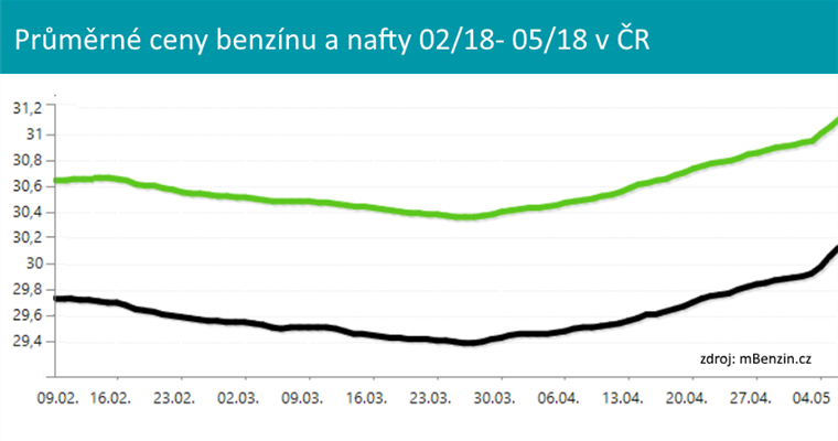 Průměrná cena v Praze je dlouhodbě nejvyšší v republice, v květnu 2018 však dosahuje astronomické výše až 33,50Kč za litr benzínu. Zatímco v ostatních krajích ceny rostou postupně, s příchodem jara se především řetězce Benzina a MOL rozhodly vyšponovat ceny k nejvyšším za poslední roky.