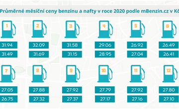 Průměrné ceny benzínu, nafty a LPG po měsících v roce 2020 podle mBenzin.cz