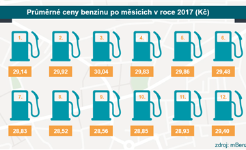 Průměrné ceny pohonných hmot po měsících v roce 2017 podle mBenzin.cz