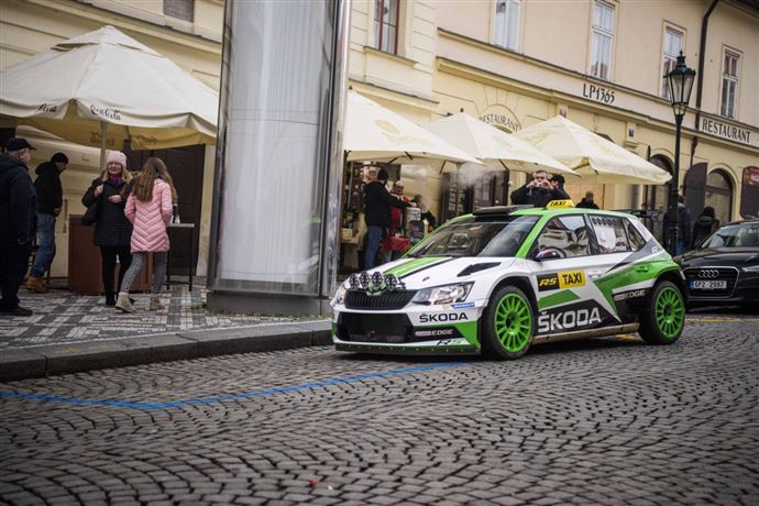 Svezení ostrým závodním vozem s křídlem a ochraným rámem se hned tak každému nepoštěstí. Před letošními Vánoci si však Škodu Fabia R5 mohl objednat kdokoliv, Škoda Motorsport ji poslala do ulic Prahy jako běžný taxík, řidičem nebyl nikdo jiný, než Jan Kopecký, mistr Evropy a několikanásobný mistr České republiky v rally.