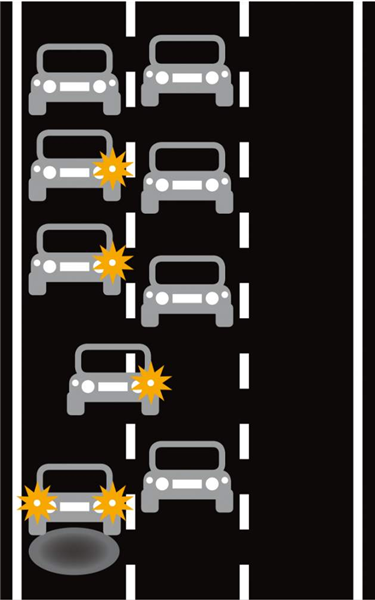 Pokud projíždíte kolem nehody mezi prvními, jste povinni poskytnout první pomoc. Zapněte výstražné směrovky a poskytněte první pomoc zraněným. Ostatní spolujezdci nebo řidiči ať zatím zavolají záchranku a neprodleně umístí výstražný trojúhelník. Pokud jste účastníkem menší nehody, zajeďte do odstavného pruhu. Teprve potom vystupujte, volejte policii, bezpečnost je vždy prvořadá!
